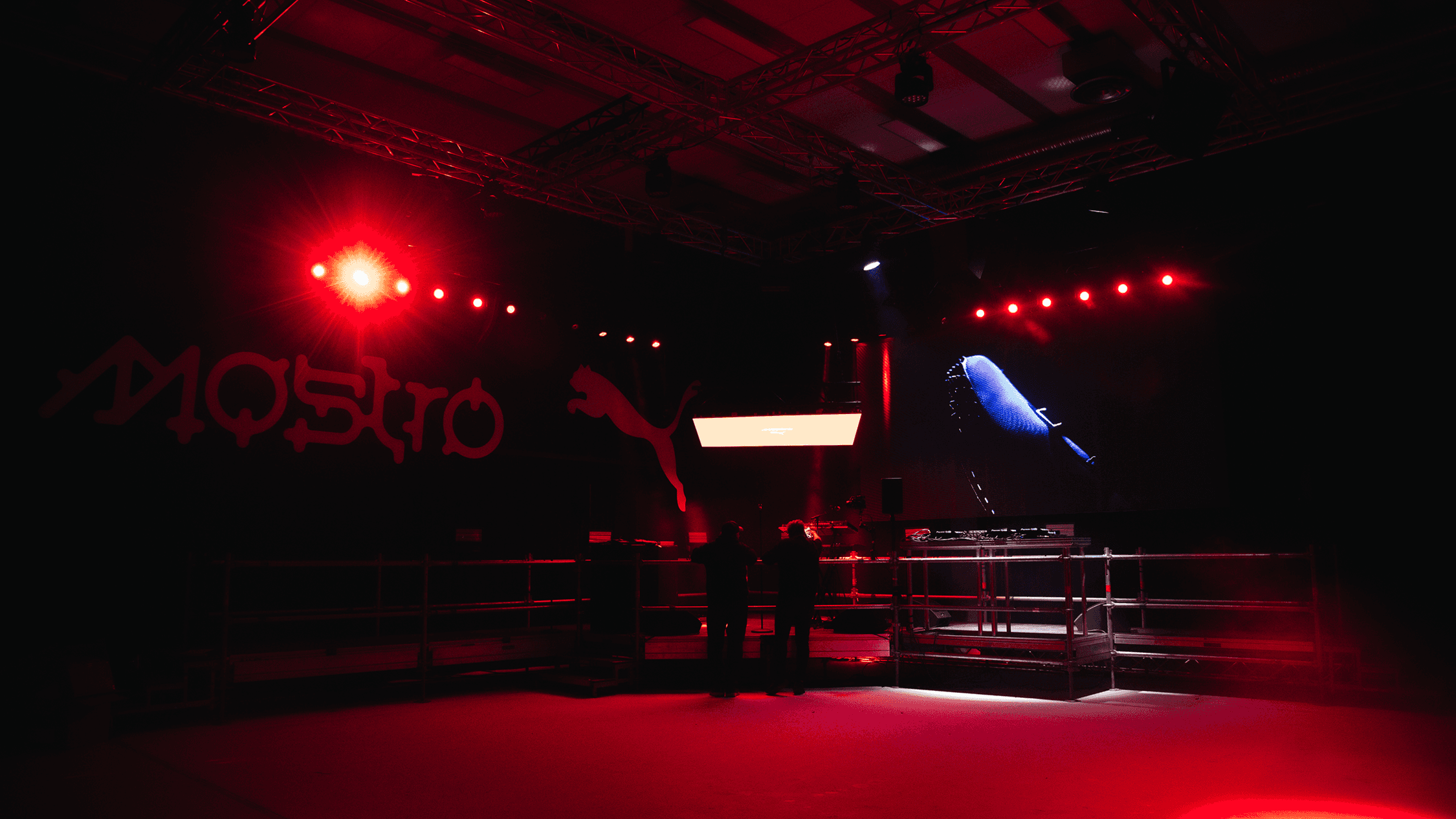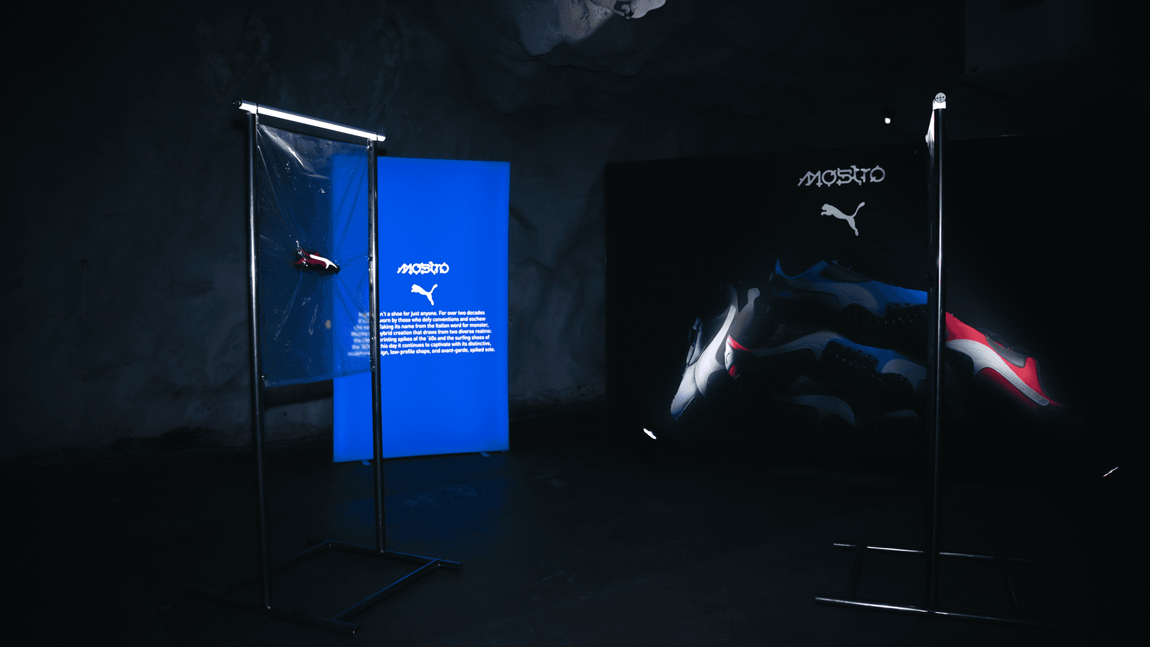 Transforming the venue into a dystopian playground where every surface, texture, and sightline echoed the shoe's raw energy. We crafted distinct sensory zones that moved visitors through choreographed moments, from stark product showcases to visceral, tactile environments. The spatial design, lighting, and materials all reinforced the Mostro's otherworldly language.